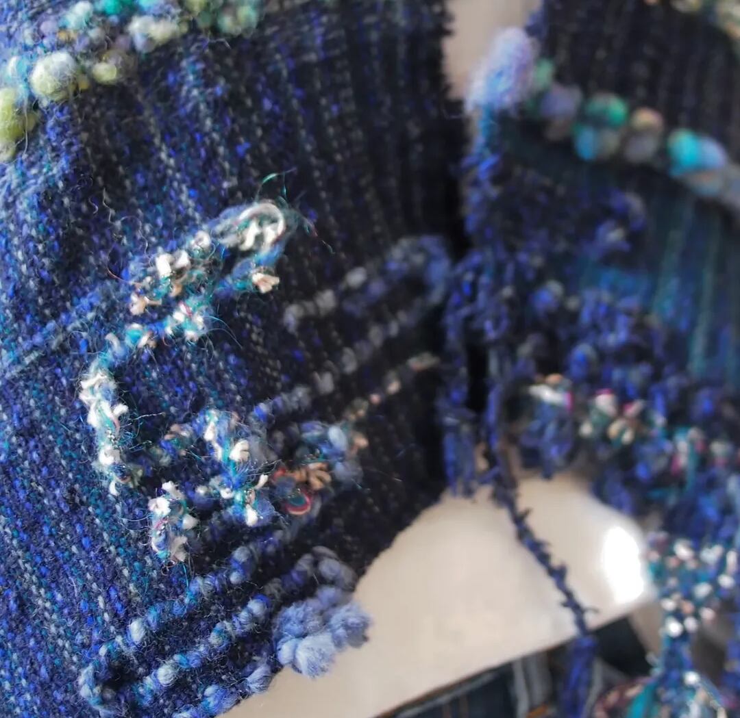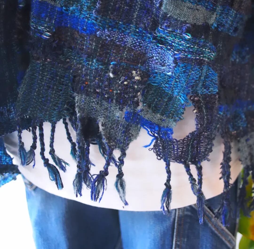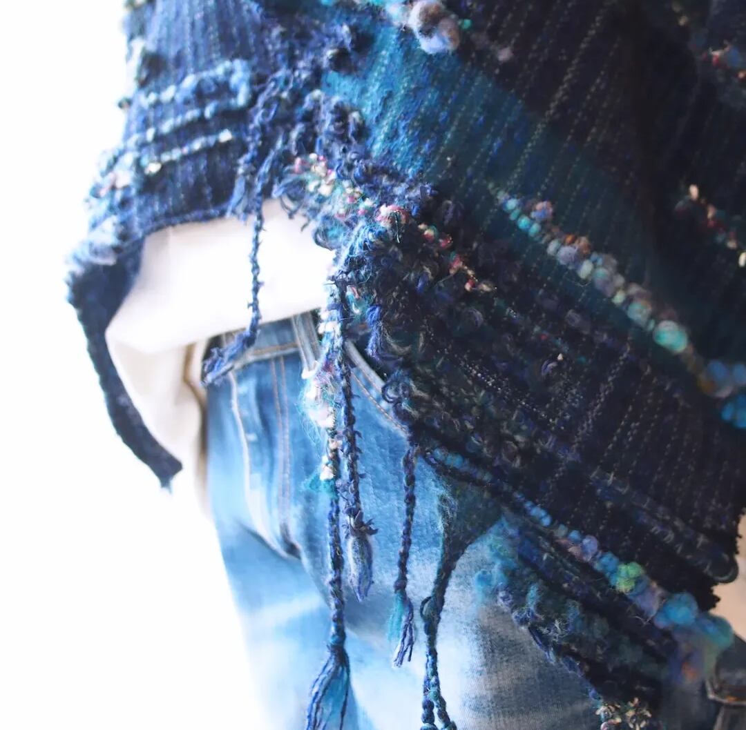 ダメージデニムをイメージしたデザインと紡いだポコポコした羊毛がポイントです。