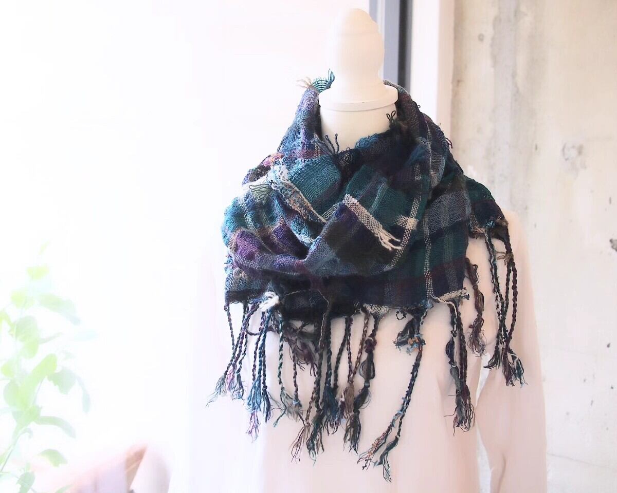 リネンとラムウールの異素材ミックスストール