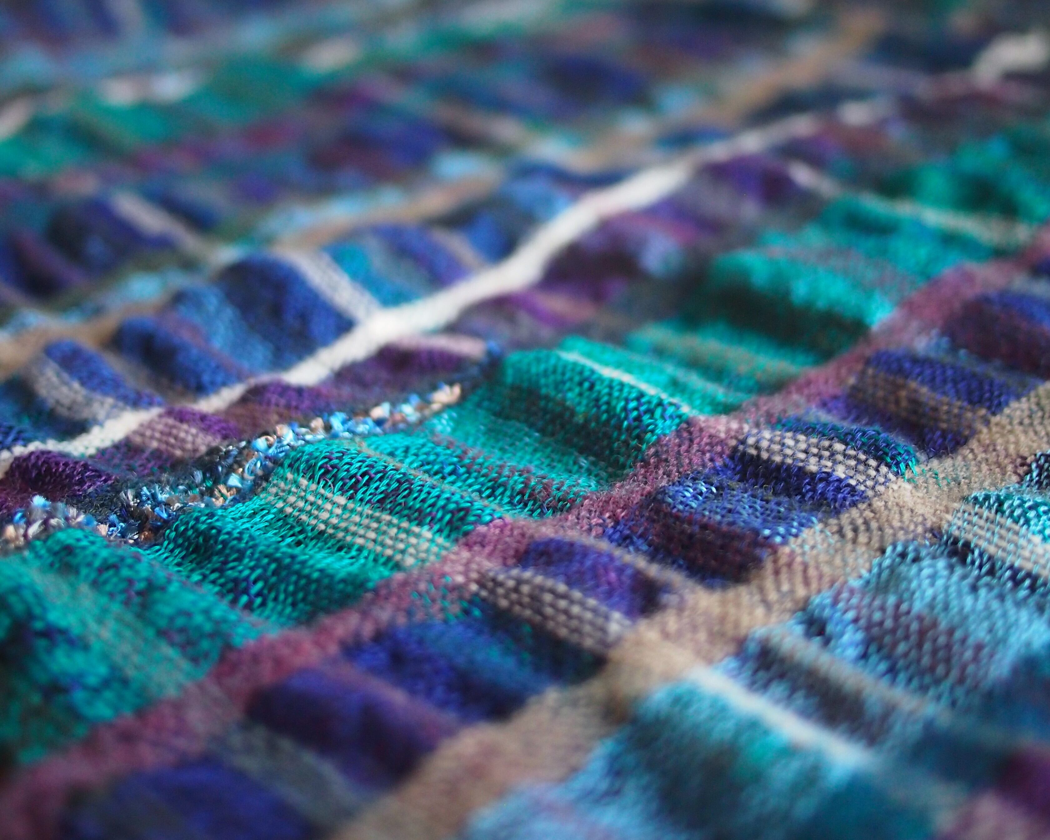 糸の縮み率が違うのでぽこぽこと動きのある楽しい1枚です。