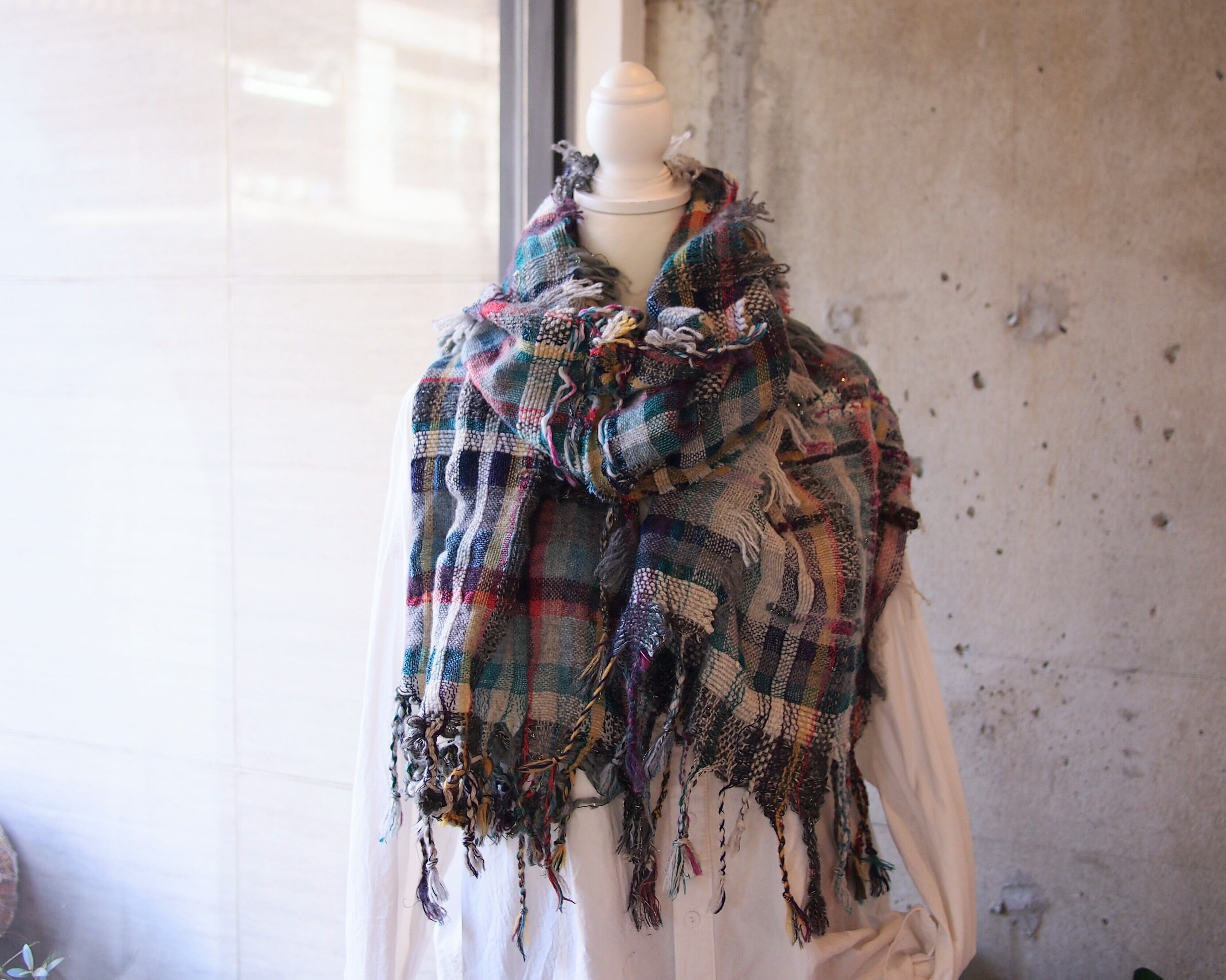 カラフルなチェック柄の軽くて柔らかいストールです